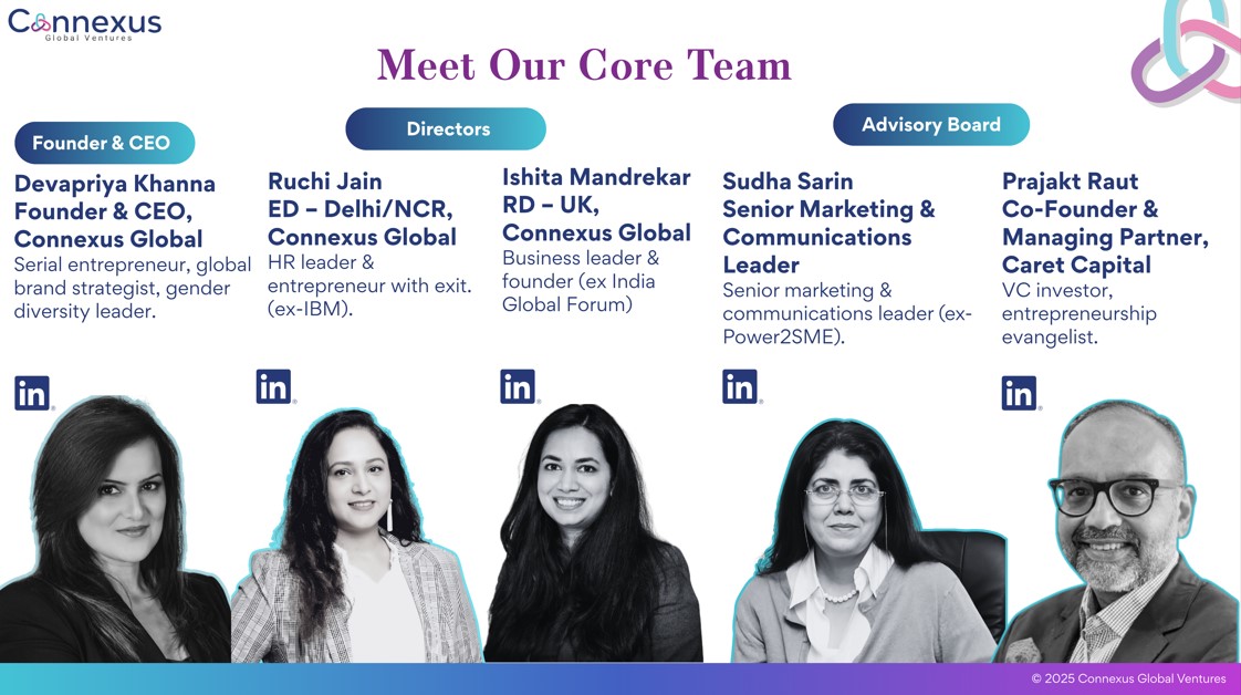 Connexus is a digital-first, gender-inclusive global business advisory and ecosystem. Anchored in India and the UK, we operate at the intersection of purpose, innovation, capital and networks.